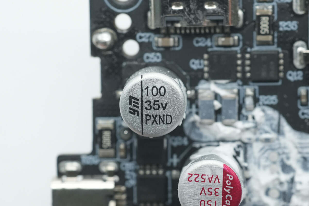 滤波固态电容来自柏瑞凯,规格为35V150μF。