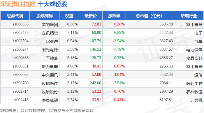 证券之星消息,10月10日,深证责任(399341)指数报收于1699.95点,跌1.68%,成交1705.57亿元,换手率2.1%。当日该指数成份股中,上涨的有47家,长春高新以5.45%的涨幅领涨,下跌的有53家,深南电路以9.03%的跌幅领跌。