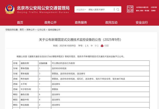 青小媒(北青社区传媒副中心版:BQSQfuzhongxin)了解到:10月9日,北京市公安交管部门发布公告,公布了一批固定式交通技术监控设备。全市114处道路新增298个“电子警察”,重点监测禁限类、违反标志标线类、闯红灯、不礼让斑马线、违法停车、驾车不系安全带、驾车接打电话等违法行为。