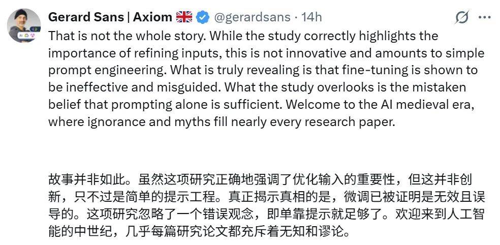 至于 ACE 究竟能否做到让「微调已死」,还需要读者您自己判断,毕竟该研究也在网上遭到了一些批评。