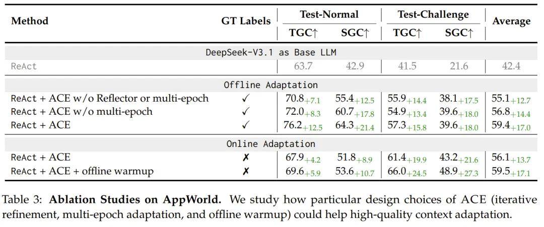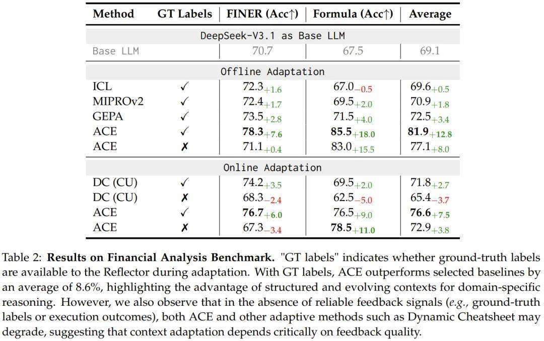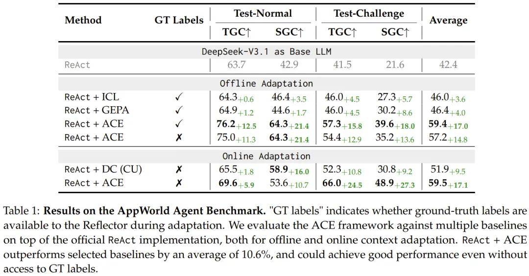 该团队提出的 ACE(Agentic Context Engineering) 框架能够实现可扩展且高效的上下文自适应,并且离线(如系统提示优化)与在线(如测试时记忆自适应)场景都适用。