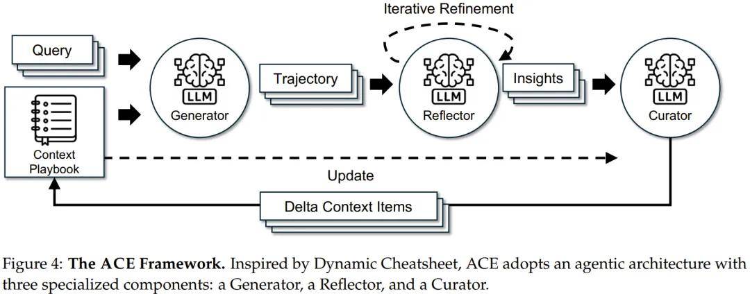 基于 Dynamic Cheatsheet(参阅 arXiv:2504.07952)的 agentic 架构,ACE 引入三种协作角色: