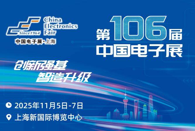 2025年11月5日至7日,第106届中国电子展将在上海新国际博览中心盛大举办。本届展会以“创新强基 智造升级”为主题,携手2025年秋季全国特种电子元器件展览会、2025中国半导体产业与应用博览会,全面展示我国电子信息技术的最新成果。作为电子行业风向标,本届展会聚焦基础电子元器件、集成电路、半导体设备与核心零部件、电子制造设备、特种电子等核心领域,全力构建协同创新的产业生态,打造推动中国电子信息产业高质量发展的核心平台。