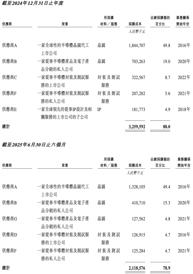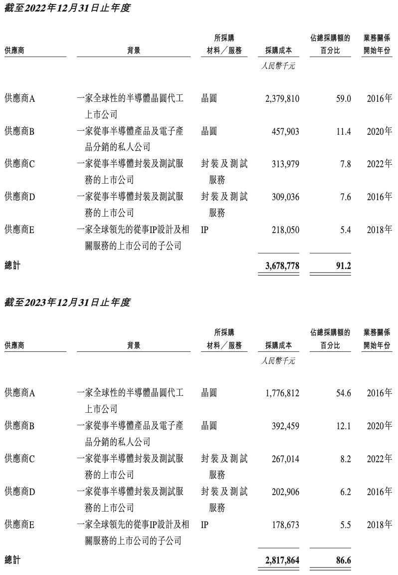同期,向五大供应商的采购额分别占其采购总额的91.2%、86.6%、88.0%及78.9%。