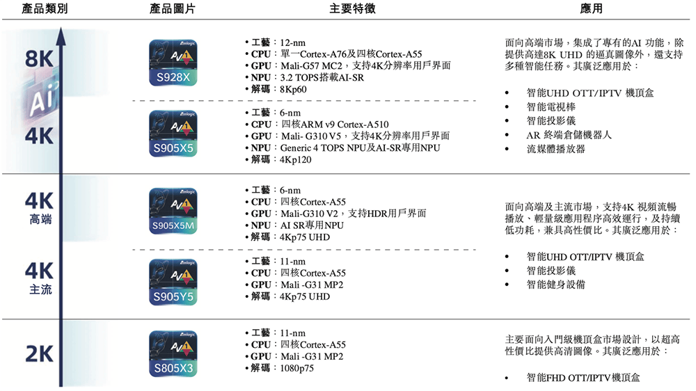 晶晨股份的智能机顶盒SoC主要产品类型如下: