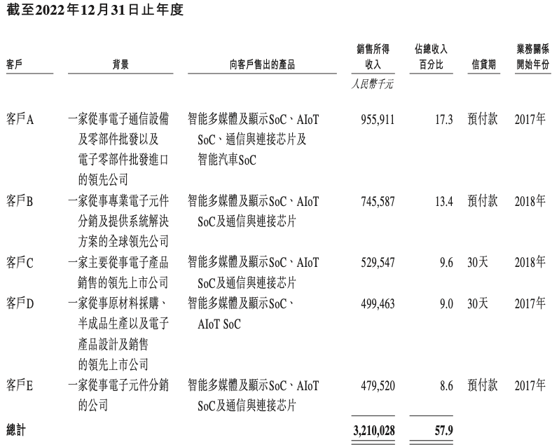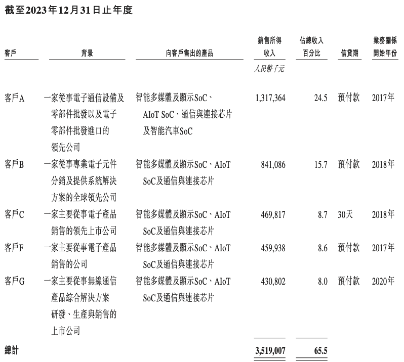 晶晨股份与五大客户维持了5至8年的长期稳定合作关系。