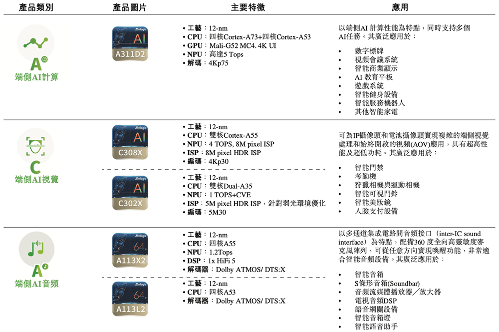 根据招股书,晶晨股份成立于2003年7月,提供智能终端控制与连接解决方案,包括智能多媒体与显示SoC主控芯片、AIoT SoC主控芯片、通信与连接芯片、智能汽车SoC芯片等。