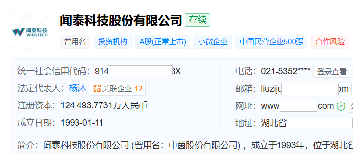 天眼查显示,闻泰科技成立于1993年,位于湖北省黄石市,1996年8月在上交所主板上市,为全球主流品牌提供半导体、新型电子元器件、3C、家电、汽车电子等产品研发设计和生产制造服务。