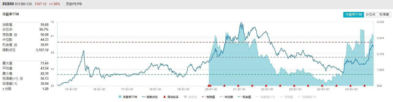 中证科技50指数是从科技相关行业中选取50只市值大、流动性好的上市公司证券作为指数样本,个股平均流通市值约为801亿元。