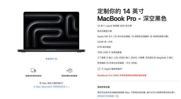 苹果发布新款14英寸MacBook Pro 配M5芯片12999起