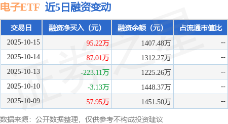 证券之星消息,10月15日,电子ETF(159997)融资买入680.16万元,融资偿还584.95万元,融资净买入95.22万元,融资余额1407.48万元。