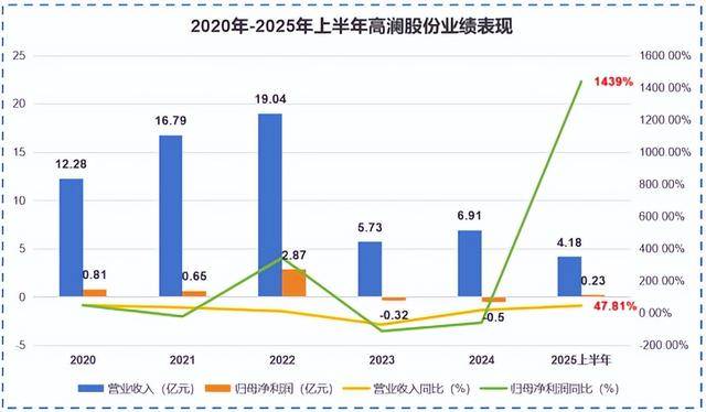 多元布局的工业热管理专家,2025年上半年,高澜股份交出了一份亮眼的成绩单:实现营收4.18亿元,同比增长47.81%;实现净利润0.23亿元,同比暴增1439%,成功实现扭亏为盈。