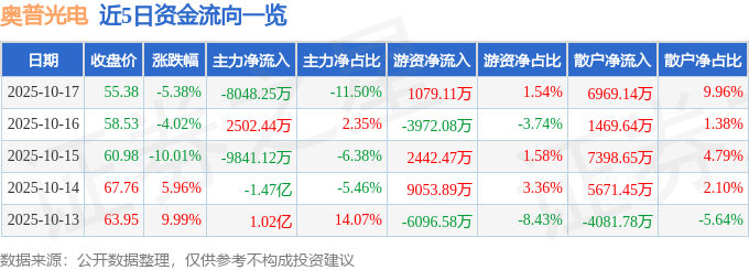 10月17日的资金流向数据方面,主力资金净流出8048.25万元,占总成交额11.5%,游资资金净流入1079.11万元,占总成交额1.54%,散户资金净流入6969.14万元,占总成交额9.96%。