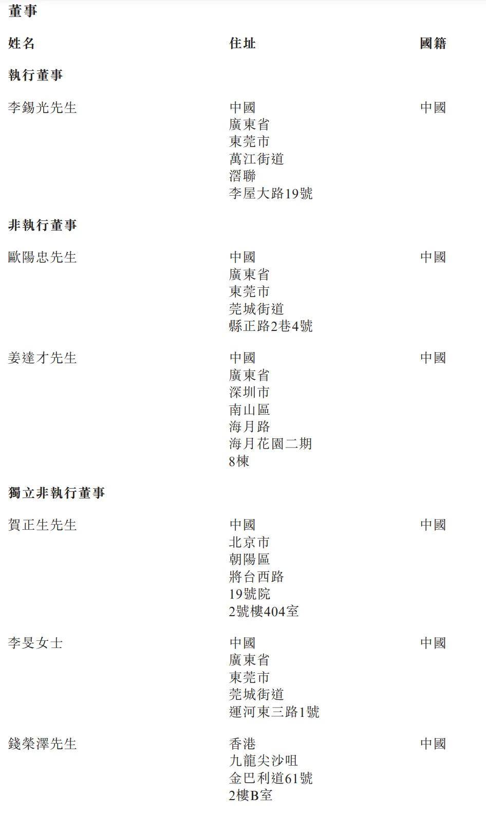 天域半导体执行董事为李锡光,非执行董事分别为欧阳忠、姜达才;独立非执行董事分别为贺正生、李旻女士、钱荣泽。