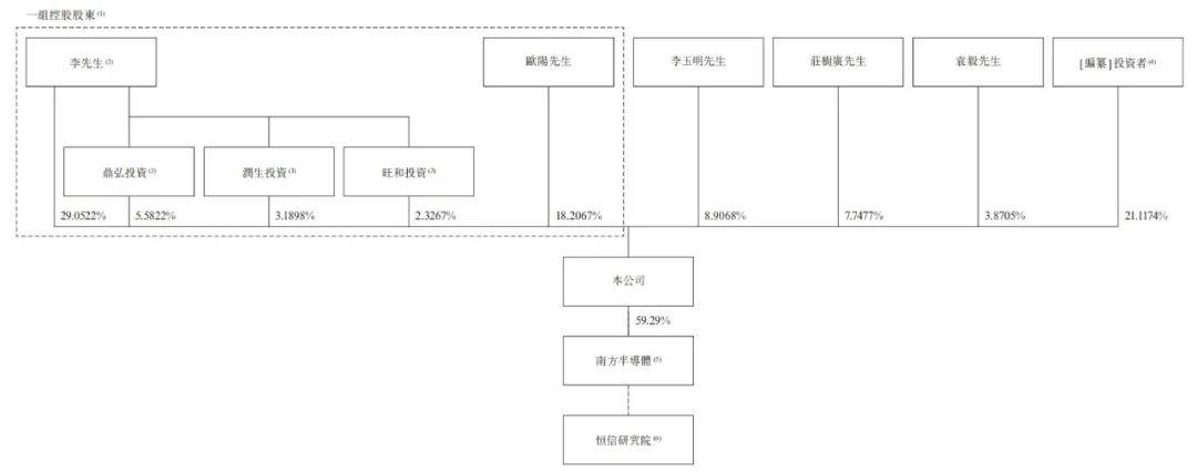 李锡光、欧阳忠、天域共创、鼎弘投资、润生投资及旺和投资被视为一组控股股东,共持有已发行股份总数的58.36%。