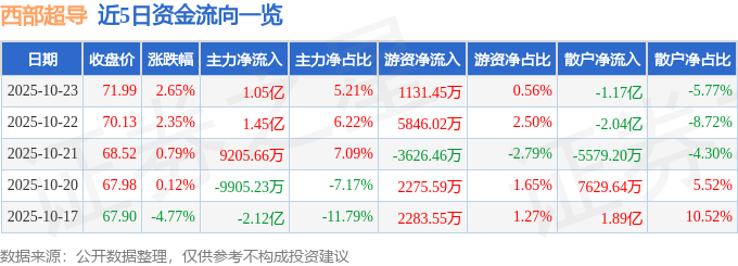10月23日的资金流向数据方面,主力资金净流入1.05亿元,占总成交额5.21%,游资资金净流入1131.45万元,占总成交额0.56%,散户资金净流出1.17亿元,占总成交额5.77%。