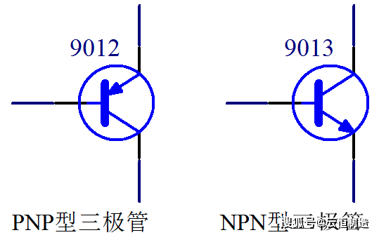 NPN和PNP型三极管功能相同,但极性完全相反,就像电源的正负极: