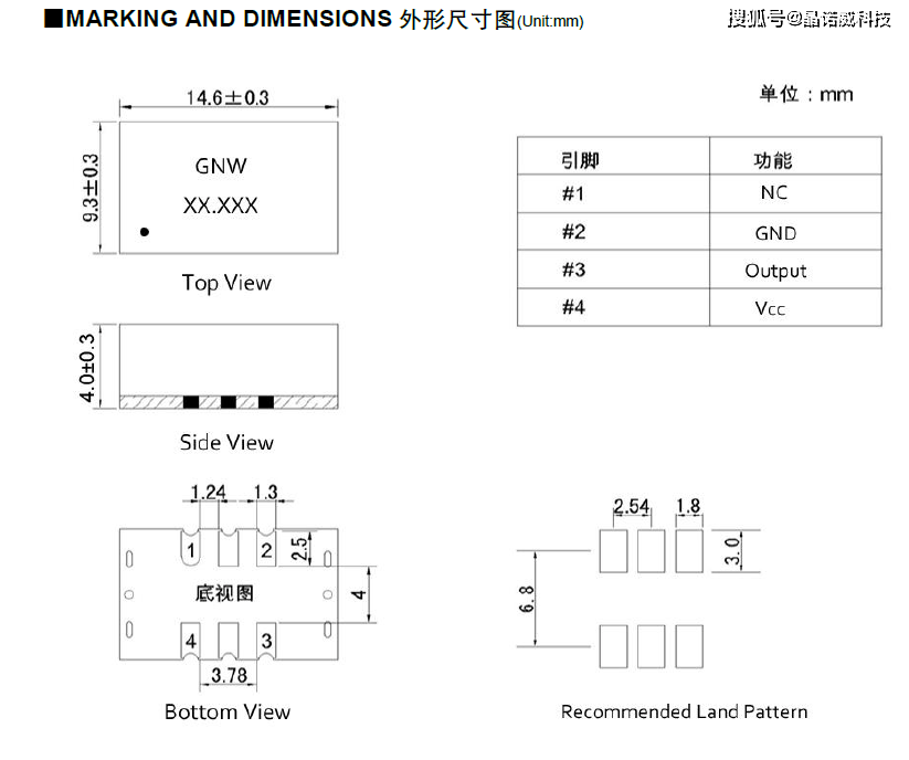 正弦波输出40MHz温补晶振TCXO尺寸及引脚说明