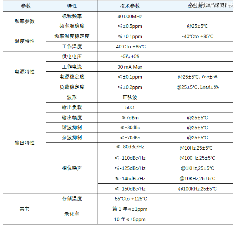 晶诺威科技产正弦波输出40MHz温补晶振TCXO规格参数