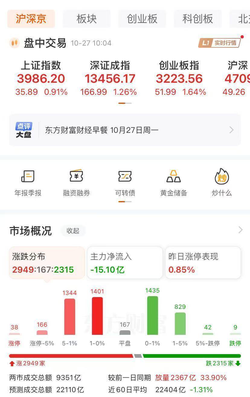 光刻胶、存储芯片、算力硬件等方向涨幅居前,沪深京三市上涨个股近3000只。