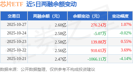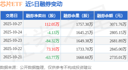 证券之星消息,10月27日,芯片ETF(512760)融资买入4179.27万元,融资偿还4169.64万元,融资净买入9.63万元,融资余额2.3亿元,近20个交易日中有12个交易日出现融资净买入。
