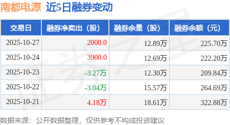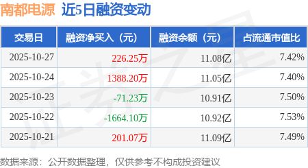 证券之星消息,10月27日,南都电源(300068)融资买入5796.34万元,融资偿还5570.09万元,融资净买入226.25万元,融资余额11.08亿元。