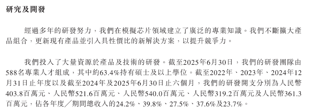 2025年上半年,纳芯微的研发开支为人民币3.613亿元,较2024年上半年的3.192亿元同比增涨约13.2%。