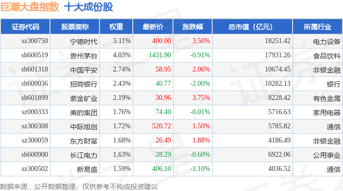 巨潮大盘(399314)指数十大成份股详情如下: