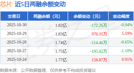 证券之星消息,10月30日,芯片(159813)融资买入2714.57万元,融资偿还2875.71万元,融资净卖出161.14万元,融资余额1.77亿元。