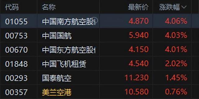 航空股普涨,中国南方航空涨超4%。国泰海通证券指出,近期国内重要会议期间,客座率与国内票价保持同比上升,公商出行延续9月活跃趋势,估算10月国内含油票价同比上升3-4%。根据预售观察传统换季影响弱于往年,业界看好公商需求继续向好。