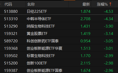 ETF午间收盘:科创半导体ETF鹏华涨2.30% 日经225ETF跌4.53%