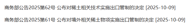 商务部、海关总署公告:经批准,自即日起至2026年11月10日,商务部、海关总署公告2025年第55号、56号、57号、58号,及商务部公告2025年第61号、62号暂停实施。