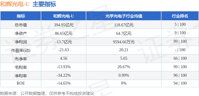 该股主要指标及行业内排名如下: