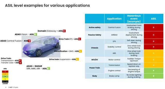 不同汽车系统因危险事件的风险差异,对应不同ASIL等级,具体示例如下表: