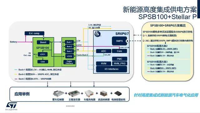 意法半导体(ST)车规PMIC最新推出的SPSB100为代表,是一款匹配高集成度MCU的产品,ST给出的组合是SPSB100+Stellar P。