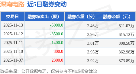 证券之星消息,11月13日,深南电路(002916)融资买入7245.87万元,融资偿还9378.46万元,融资净卖出2132.59万元,融资余额7.62亿元。