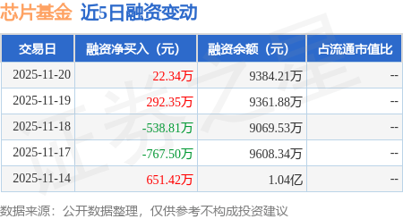 证券之星消息,11月20日,芯片基金(159801)融资买入1018.41万元,融资偿还996.08万元,融资净买入22.34万元,融资余额9384.21万元,近20个交易日中有11个交易日出现融资净买入。