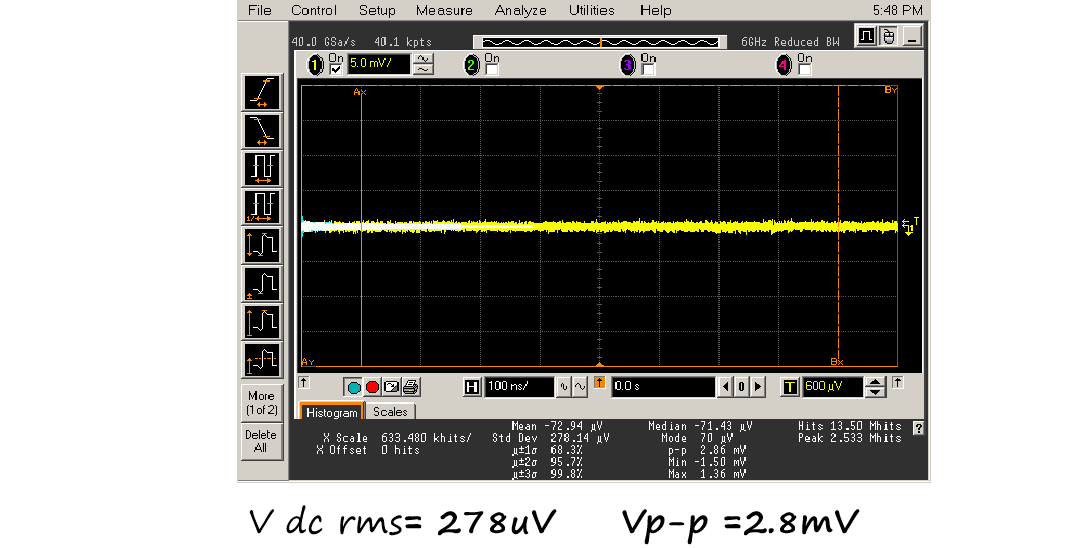 随着电流电平的下降,示波器本身具有的噪声— 垂直噪声,将变成一个现实问题。当您测量低电平信号时,测量系统的噪声可能会导致实际信号测量的精度下降。由于示波器是一种宽带测量仪器,所以示波器的带宽越宽,垂直噪声就越高。在进行低电平测量时,需要注意示波器的存储深度可能会影响本底噪声。在带宽和其他条件都相同的情况下,存储越深,噪声越大。