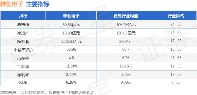 该股主要指标及行业内排名如下: