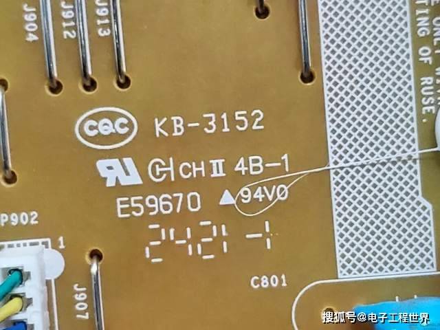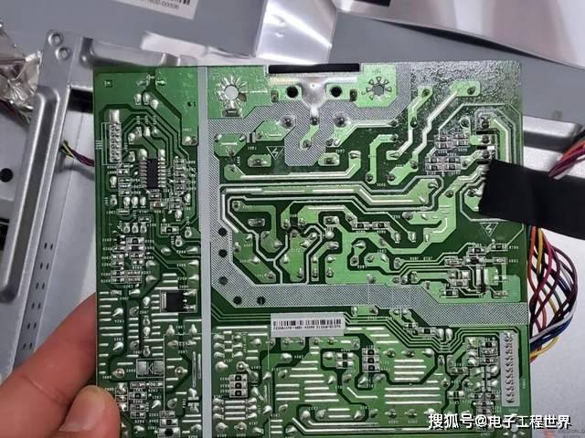 电源板背部元件不多。使用大量的焊锡,也可以起到散热作用。高压区域也圈起来了。