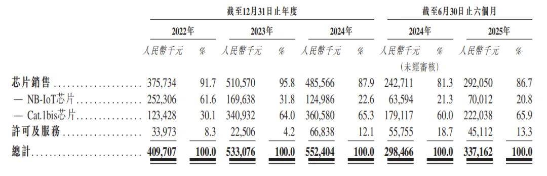 其中,芯片销售收入占总营收的86.7%,NB-IoT芯片销售占比为20.8%,Cat.1bis芯片销售占比为65.9%。