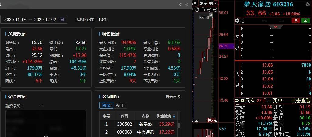 值得注意的是,受实控人变更的预期刺激,自11月19日开始,梦天家居走出10天7板的妖娆走势,从15.7元/股一路涨至33.66元/股,大涨114.39%,成为A股并购重组概念的龙头。