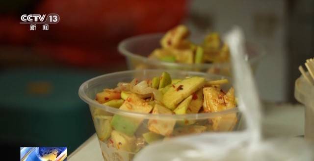 总台记者 杨雪:街头巷尾,最具广西特色的还得是酸嘢,而红糖酸嘢更是将酸、甜、辣、咸完美融合。将新鲜芒果、菠萝、番石榴等食材切块,加入红糖粉和秘制调料搅拌均匀,再根据口味加入辣椒粉,红糖的蜜甜与水果的清甜结合,吃起来别有一番风味。