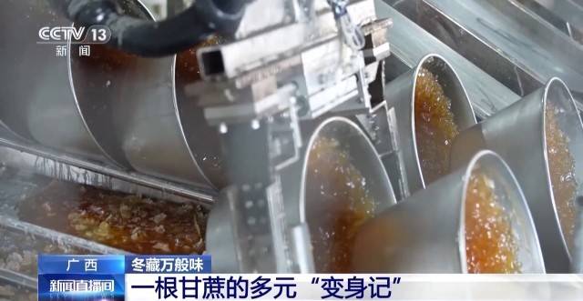 “十四五”以来,广西突破“一根蔗、一粒糖”传统模式,做强蔗糖精深加工,开发30多种功能糖产品,建成全国最大冰糖生产基地;形成“蔗渣-浆纸-环保餐具”产业链,蔗渣浆纸环保餐具综合产值超50亿元;延伸糖蜜产业链,生产酵母、调味品等。实现糖料蔗产业全链条转型升级。