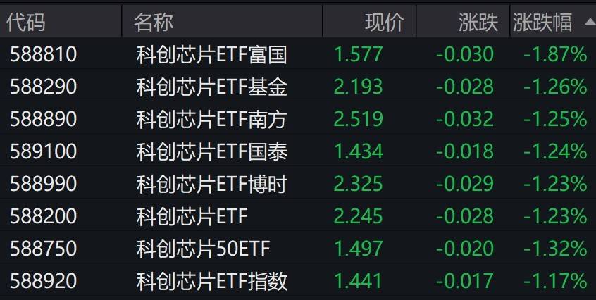 受盘面影响,科创芯片相关ETF跌超1%。