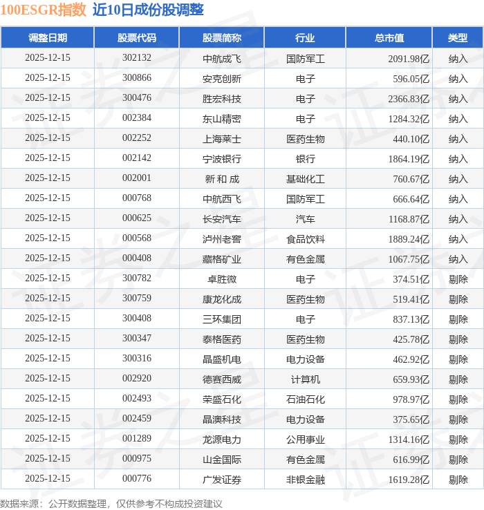 近10日内100ESGR(470027)指数成份股做了调整,新纳入了11只股票,剔除了11只股票。