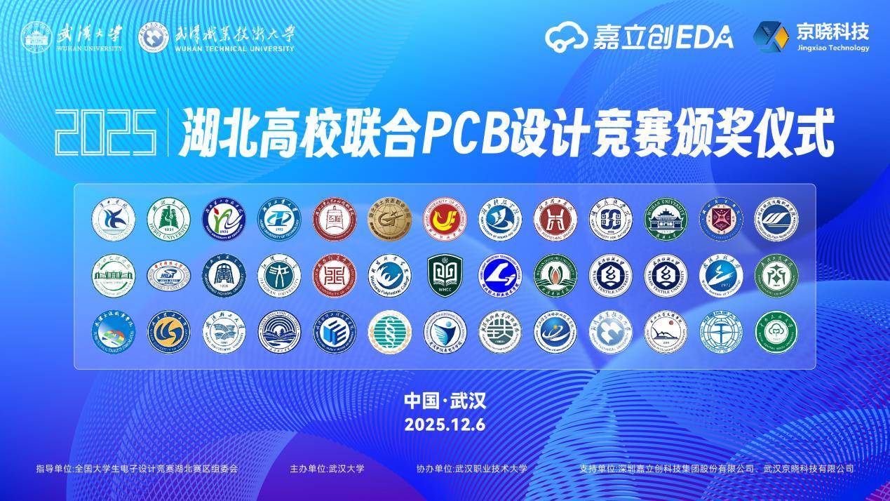 为推动国产化 EDA 工具与实践教学深度融合,搭建 “教育链 - 人才链 - 产业链 - 创新链” 有机衔接的实践平台,本次联赛由武汉大学主办、全国大学生电子设计竞赛湖北赛区组委会指导、武汉职业技术大学协办,深圳嘉立创科技集团股份有限公司与武汉京晓科技有限公司提供技术支持。