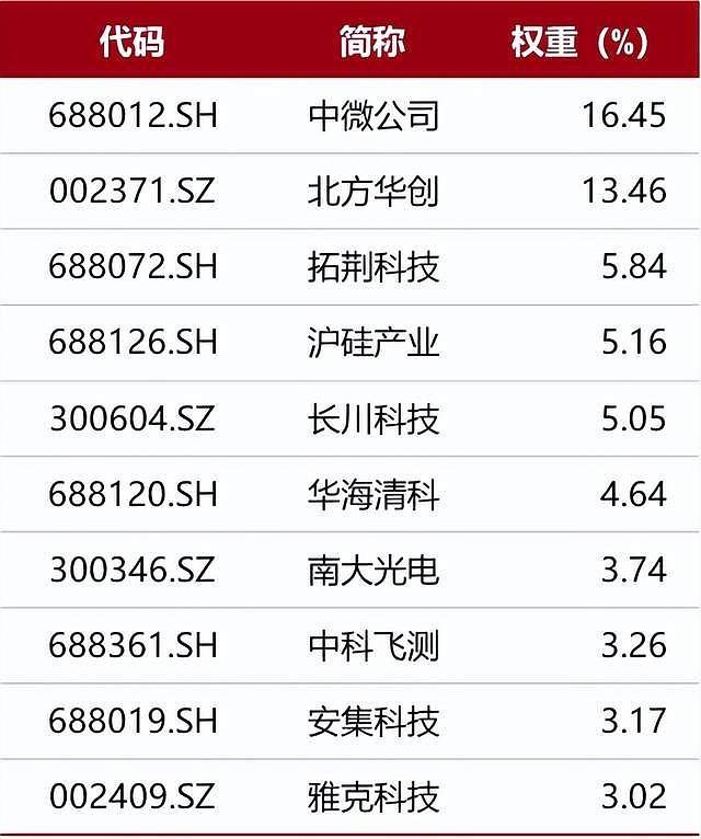 中证半导体材料设备主题指数前十大权重股