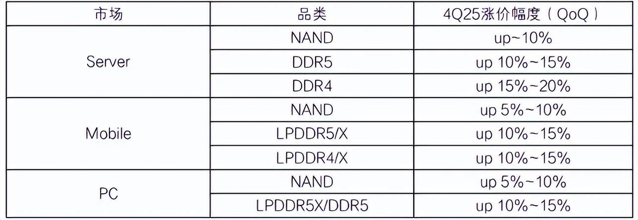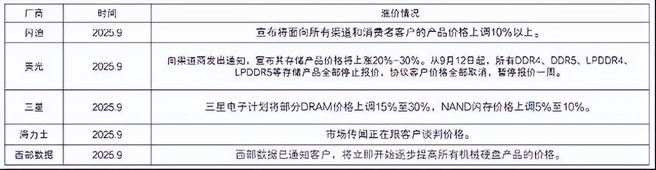 存储涨价的幅度差不多是5%到20%之间,低的涨5%,高的涨20%,有这样一个情况。下面是这些不同的厂商涨价情况的描述,这个我们也就不展开了。