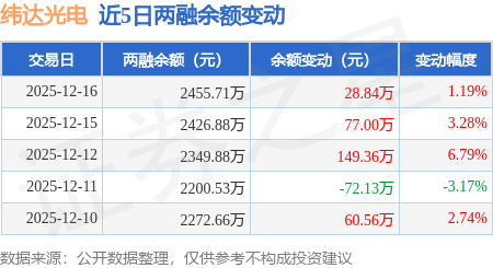 证券之星消息,12月16日,纬达光电(920001)融资买入148.37万元,融资偿还119.54万元,融资净买入28.84万元,融资余额2455.71万元,近3个交易日已连续净买入累计255.19万元。